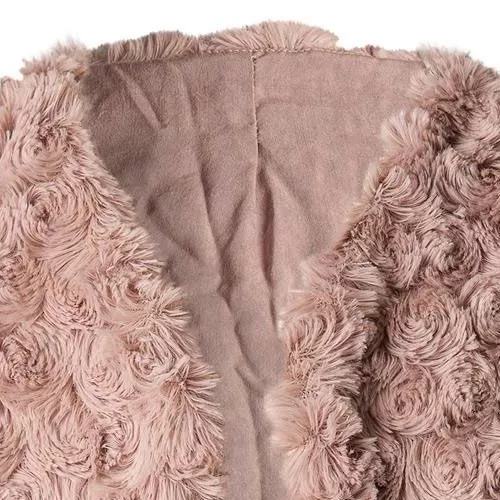 Een fluweelzachte, roze kinderbolero met een rozenpatroon van het Deense merk Maileg voor ballerina op koude dagen.