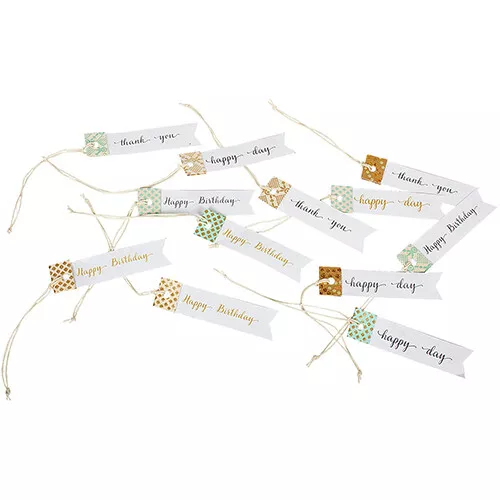 Twaalf feestelijke cadeauhangers ‘Paper Tags’ van het Deense merk Maileg met verschillende teksten. Lieflijk en stijlvol om cadeau’s extra te versieren, te feliciteren, een riem onder het hart te steken of een mooie dag toe te wensen.