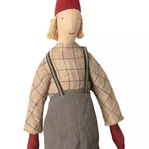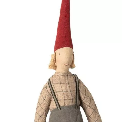 Een feestelijke, decoratieve ‘Maxi Pixy Lukas’ van het Deense merk Maileg. De sprookjes lappenpop heeft geborduurde oogjes en een klein, rood mondje. Met zijn vriendelijke gezicht, rode puntmuts en linnen tuinbroek ziet hij er hartverwarmend uit.