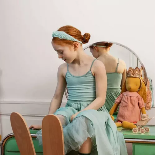 Geef een finishing touch aan de outfit met deze modieuze kinderhaarband ‘Flower – Mint’ van het Deense merk Maileg. De brede haarband is versierd met mooi gerimpelde bloembladen en door de rekbaarheid zit hij comfortabel en stevig om het hoofd.