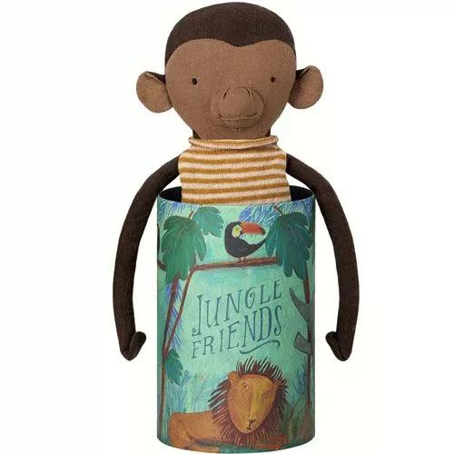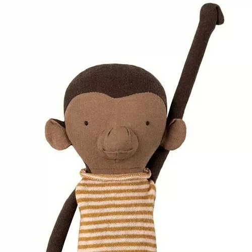 Deze charmante, linnen knuffelaap uit de serie ‘Jungle Friends’ van het Deense merk Maileg is een zachte vriend in gestreepte hemd.