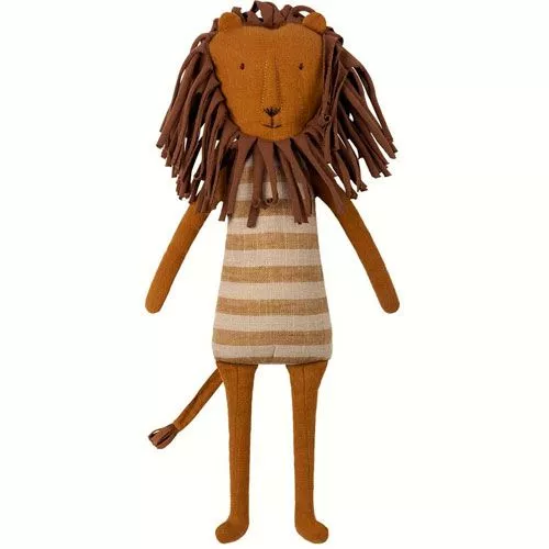Deze charmante, linnen knuffelleeuw uit de serie ‘Jungle Friends’ van het Deense merk Maileg is een zachte held in strepen.