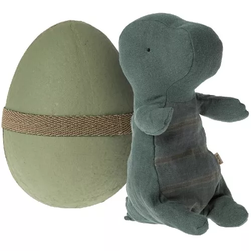 Deze blauwe dinosaurusknuffel ‘Gantosaurus in egg, Small – Dark Petrol’ van het Deense merk Maileg is klaar om uit zijn schulp te kruipen en heerlijk te knuffelen met zijn mensenvriendje.