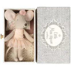 Een piepklein ballerina muisje van het Deense merk Maileg. Tussen al het dansen door houdt ze graag even pauze op haar bedbank. Wanneer het tijd is om te slapen, trekt het knuffelmuisje zich terug in het laatje. Met een lekker kussen om op te zitten of liggen.