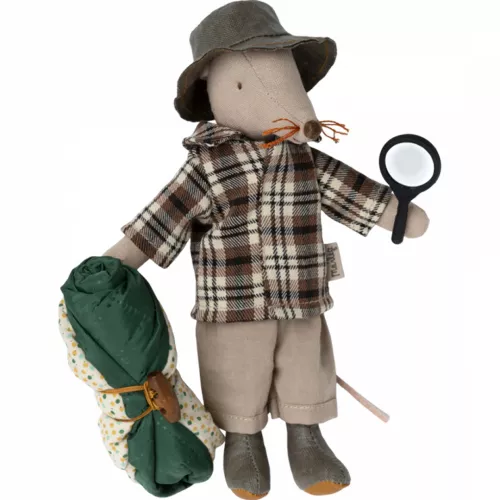 Met zijn hoed en stevige wandelschoenen is knuffelmuis ‘Wildlife Guide Mouse’ van het Deense merk Maileg klaar voor avontuur! Het vergrootglas komt ook goed van pas: daarmee ontdekt hij graag al het moois dat hij onderweg tegenkomt. En na een lange, avontuurlijke dag hoeft hij alleen zijn slaapzak uit te vouwen om de dag af te sluiten met het bewonderen van de sterrenhemel.