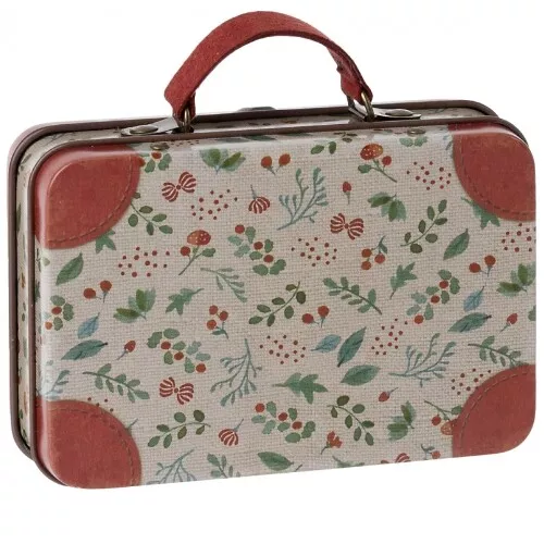Met een lieflijke decoratie van bloemetjes  is dit kleine metalen koffertje ‘Suitcase, Metal – Holly’ geschikt om spulletjes van de Maileg muizenfamilie in op te bergen.