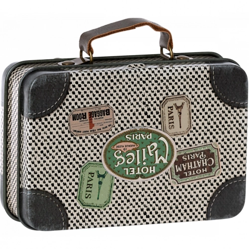 Dit kleine metalen koffertje met vintage look ‘Suitcase, Metal – Travel Off White’ geschikt om spulletjes van de Maileg muizenfamilie in op te bergen.