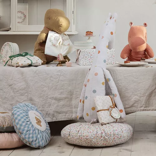 Een decoratieve ronde kussen van het Deense merk Maileg voor een fleurig accent op de bank of op bed.