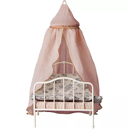 Creëer een prinsessenpoppenbedje of romantisch plekje bij de poppenbank met de poppenbedhemel ‘Rose’ van het Deense merk Maileg.