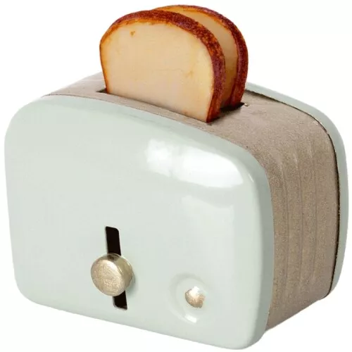 Met deze metalen poppenbroodrooster ‘Miniature Toaster – Mint’ van het Deense merk Maileg genieten poppenhuisbewoners iedere ochtend van een geroosterde boterham.