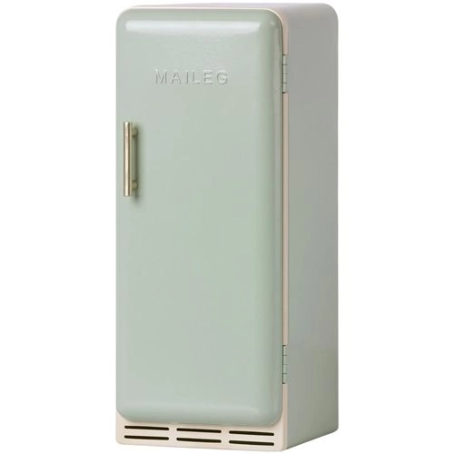 Deze mintkleurige, retro poppenkoelkast ‘Miniature Fridge – Off-White’ van het Deense merk Maileg past perfect in een poppenkeuken. Poppenhuisbewoners kunnen hun vers gehaalde boodschappen in deze klassieke koelkast bewaren.