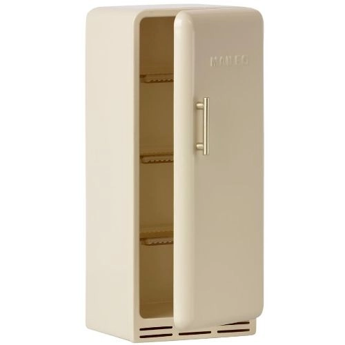 De roomwitte koelkast past in het Maileg poppenhuis.