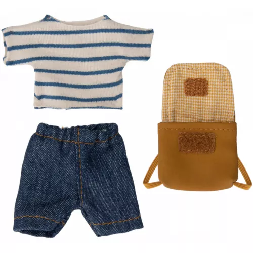 Poppenkleding en een rugzakje van het Deense merk Maileg voor de grote broer, maar waar ook grote zus knuffelmuis zich graag in kleedt.