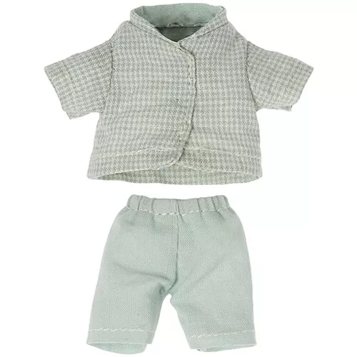 Een poppenpyjama van het Deense merk Maileg voor de kleine broer knuffelmuis, maar ook kleine zus trekt graag de pyjama van haar muizenbroertje aan.