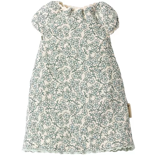 Deze lieflijke nachtjapon van Deense merk Maileg voor knuffelbeer Teddy Mum staat garant voor een goede nachtrust of een gezellig pyjamafeest. De poppenpyjama heeft een blauw bloemendessin en kanten randje.