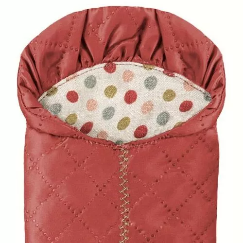 De binnenkant van de speelgoedslaapzak is gevoerd met gestippeld katoen.