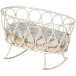 Een klein, metalen schommelwiegje voor de slaperige My en Micro babyknuffels van het Deense merk Maileg. Een behaaglijk slaapplekje voor de kleine knuffelkonijntjes uit de serie Micro en kleine muisjes van Maileg. Maar ook kleine popjes tot een lengte van ongeveer 15 cm kunnen hier heerlijk in gewiegd worden.