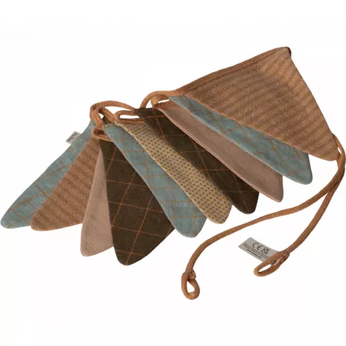 Feest of geen feest, er is altijd wel een reden voor een slinger! Deze stoffen vlaggenslinger ‘Ocher’ van het Deense merk Maileg telt 10 vlaggetjes van 12 cm hoog en hangen aan een stoffen glitter lijntje van 300 cm lang.