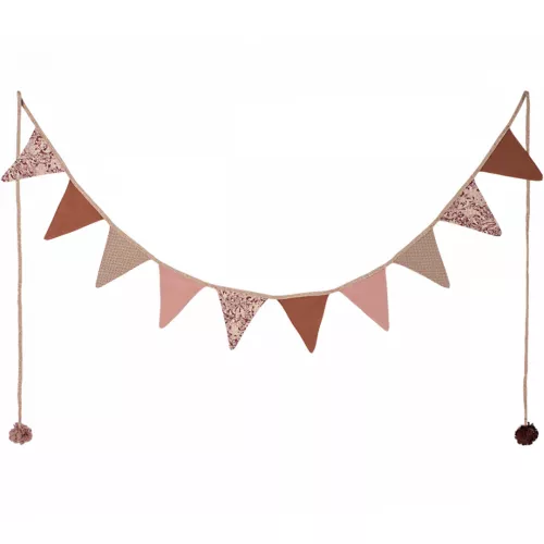 Feest of geen feest, er is altijd wel een reden voor een slinger! Deze stoffen vlaggenslinger ‘Rose’ van het Deense merk Maileg telt 10 vlaggetjes van 12 cm hoog en hangen aan een stoffen glitterkoord van 280 cm lang.